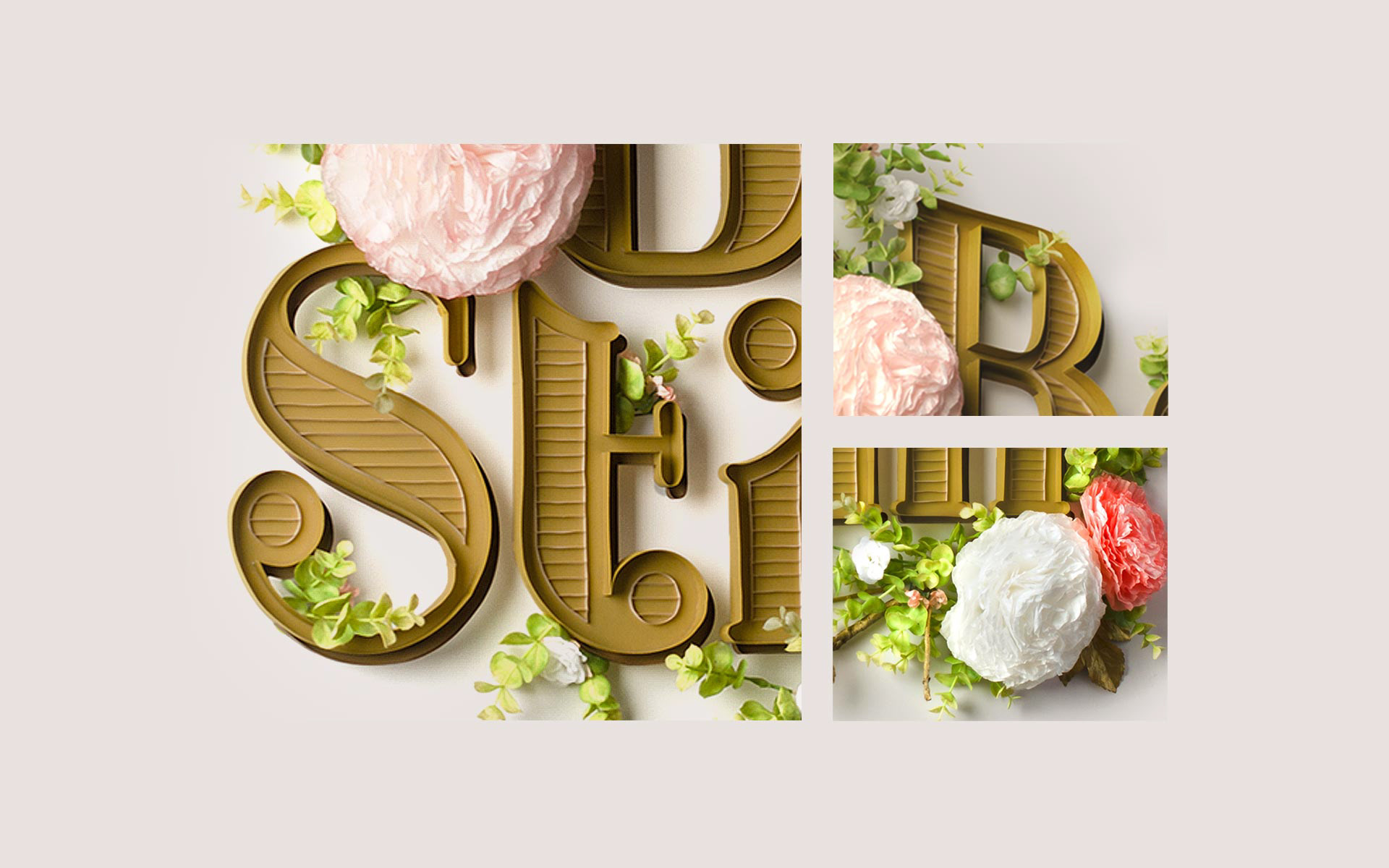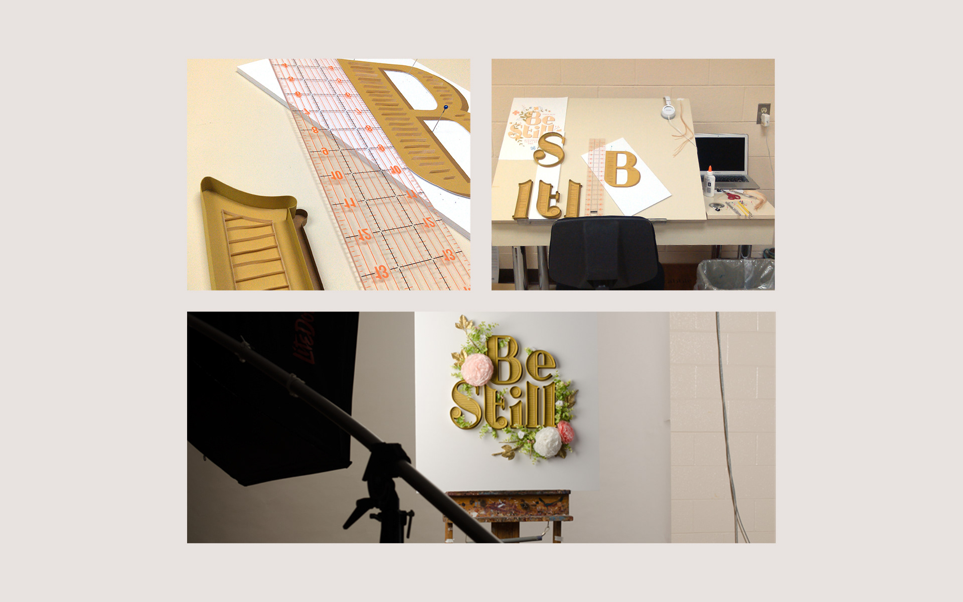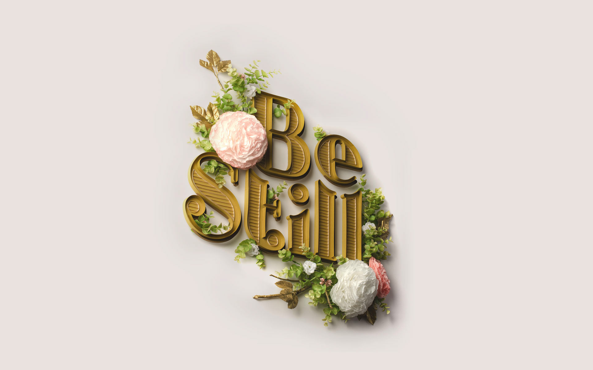 This mixed-medium paper quilling communicates the peaceful message of the type through use of calming colours and natural elements. The natural elements growing from the type express the beauty and vibrancy found in being still.